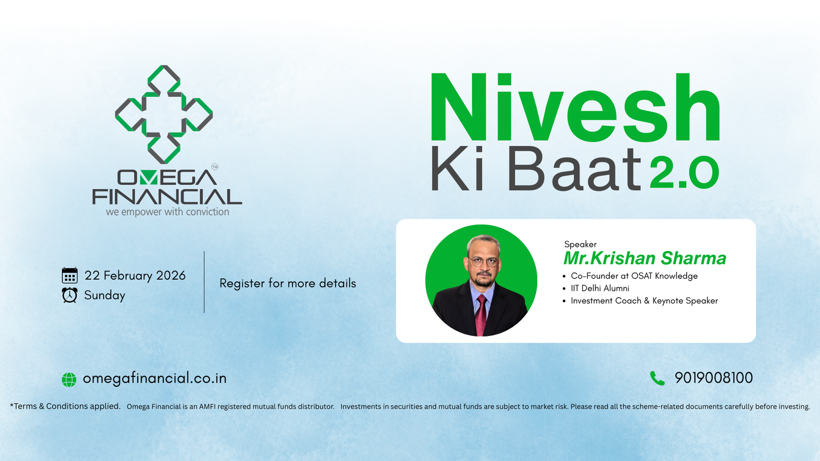 Nivesh Ki Baat is an investor-focused knowledge session by Omega Financial designed to help individuals understand the right way of investing for long-term wealth creation. This event brings together like-minded investors, financial experts, and goal-oriented individuals to discuss practical strategies, common mistakes, and proven approaches used by successful investors.